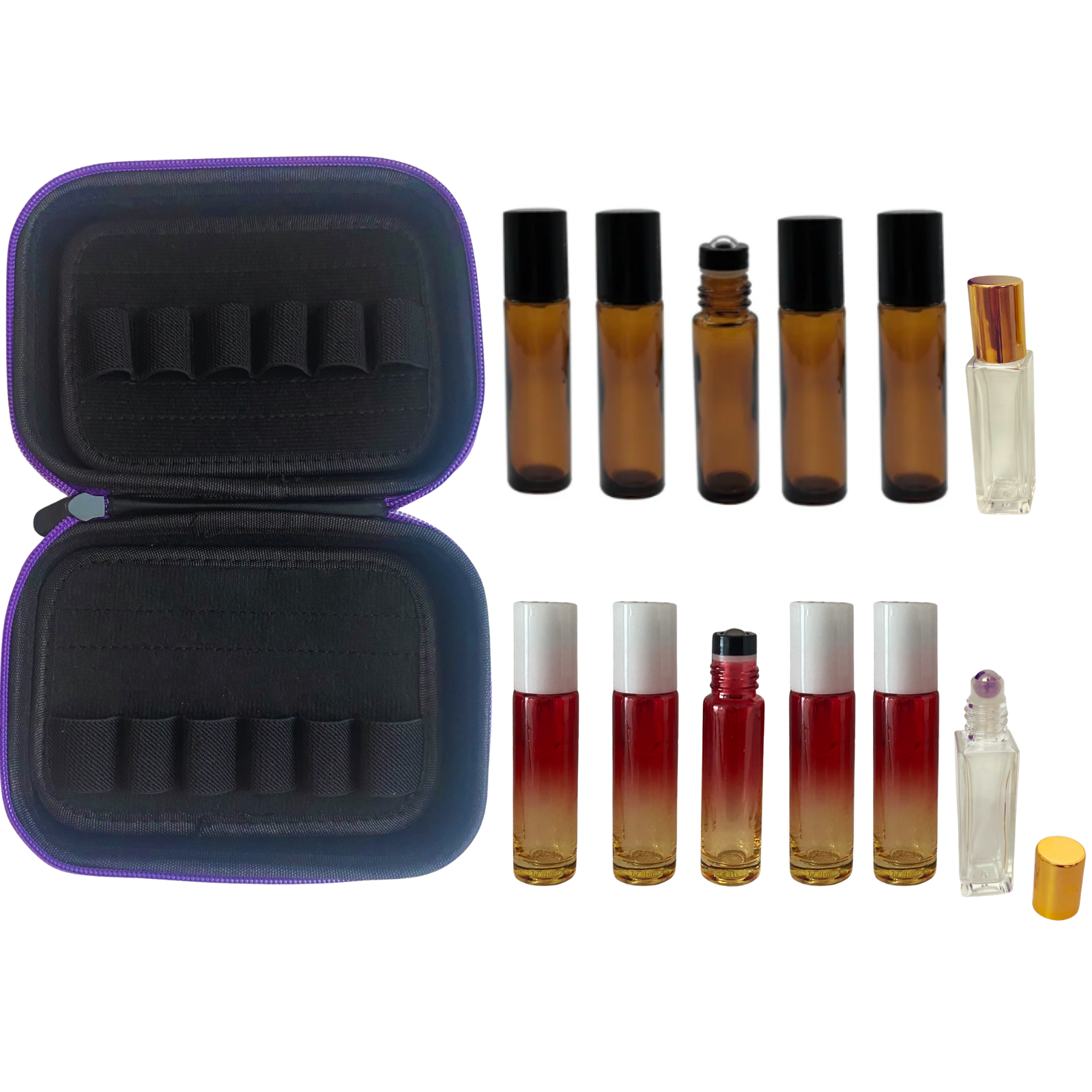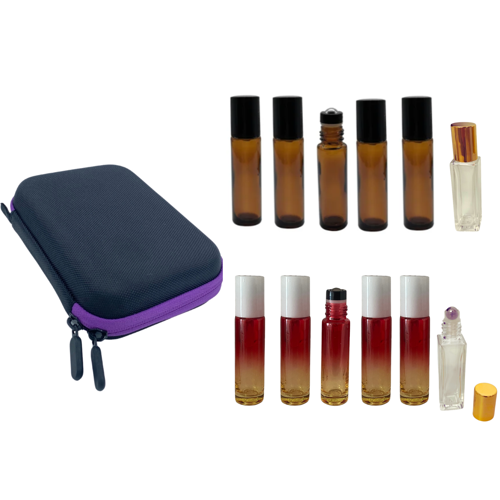 Setul contine 5 sticlute ambra de 10ml. cu mecanism tip rollon.