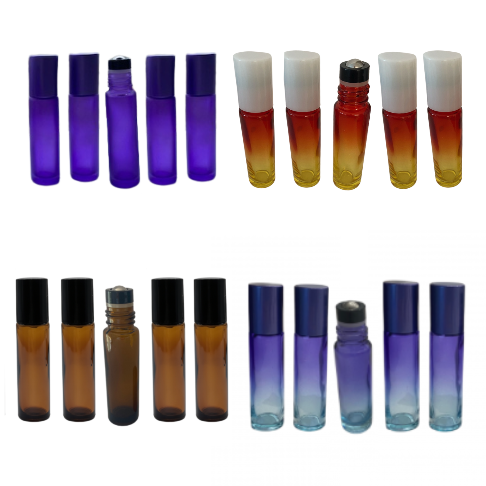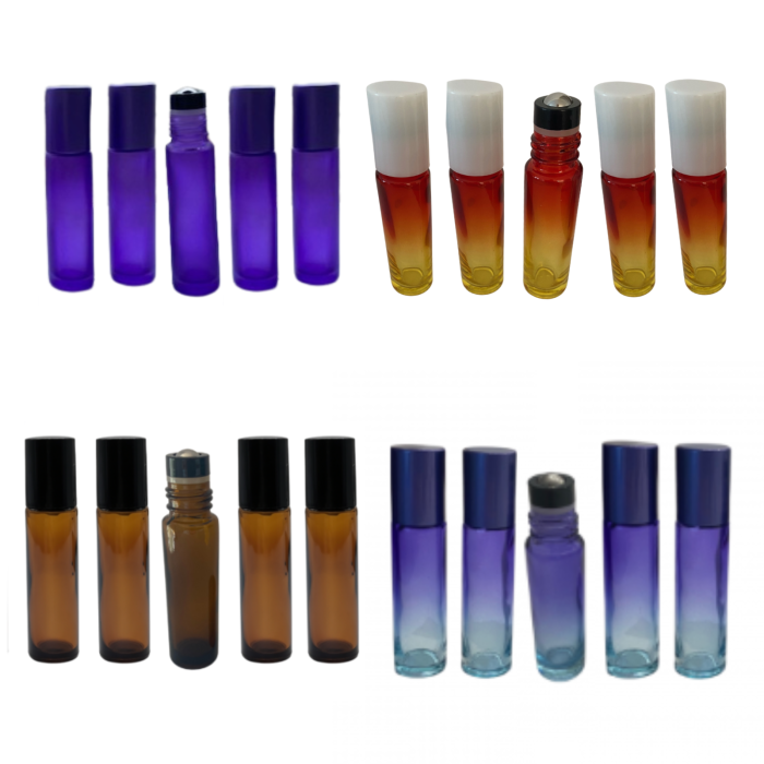 Set 5 bucati, recipient din sticla multicolora de 10ml. cu capac rollon.