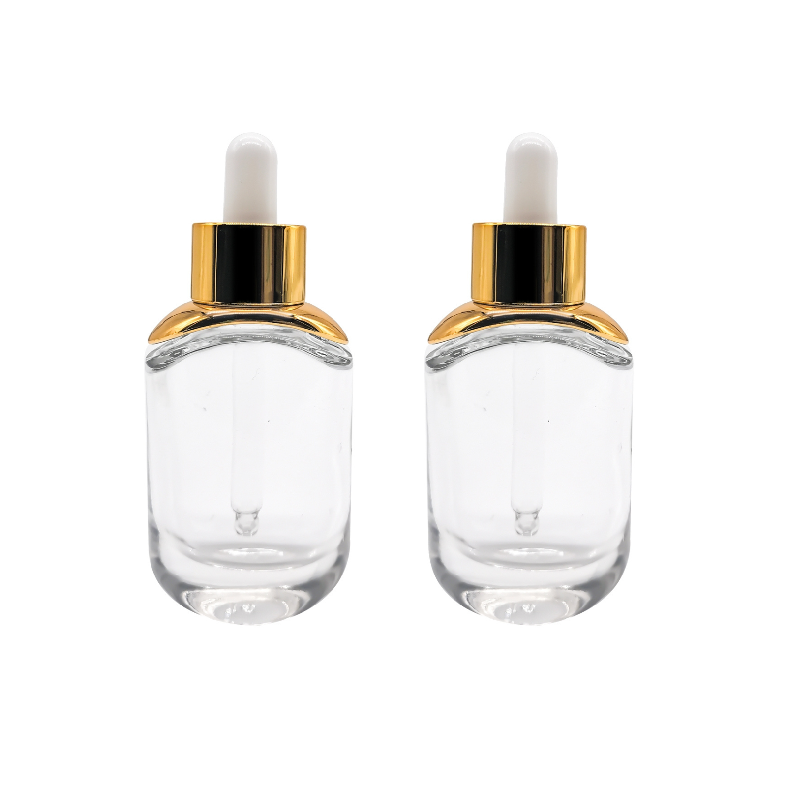Lyana Sticla transparenta cu pipeta si capac alb-auriu 30ml - set 2 buc