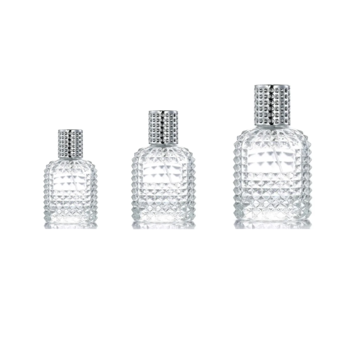 Sticluta transparenta pentru parfum de 50 ml. cu pulverizator spray.